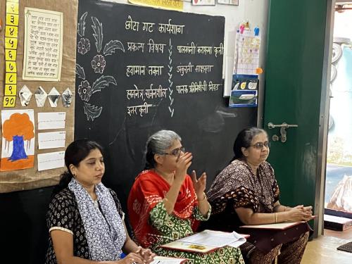 यानंतर शिक्षकांनी आत्तापर्यंत वर्गात घेतलेल्या प्रकल्प विषयाबद्दल माहिती दिली. त्यामध्ये मुलांबरोबर झालेल्या गप्पा, मुलांचे आलेले प्रतिसाद पालकांपर्यंत पोहोचवले. वर्गातील काही उपक्रमाबद्दल माहिती दिली. उदा. हवामान तक्ता कसा तयार केला जातो आणि तो मुलांच्या निरीक्षणशक्ती व तर्कशक्ती विकसित करण्यात कसा मदत करतो.